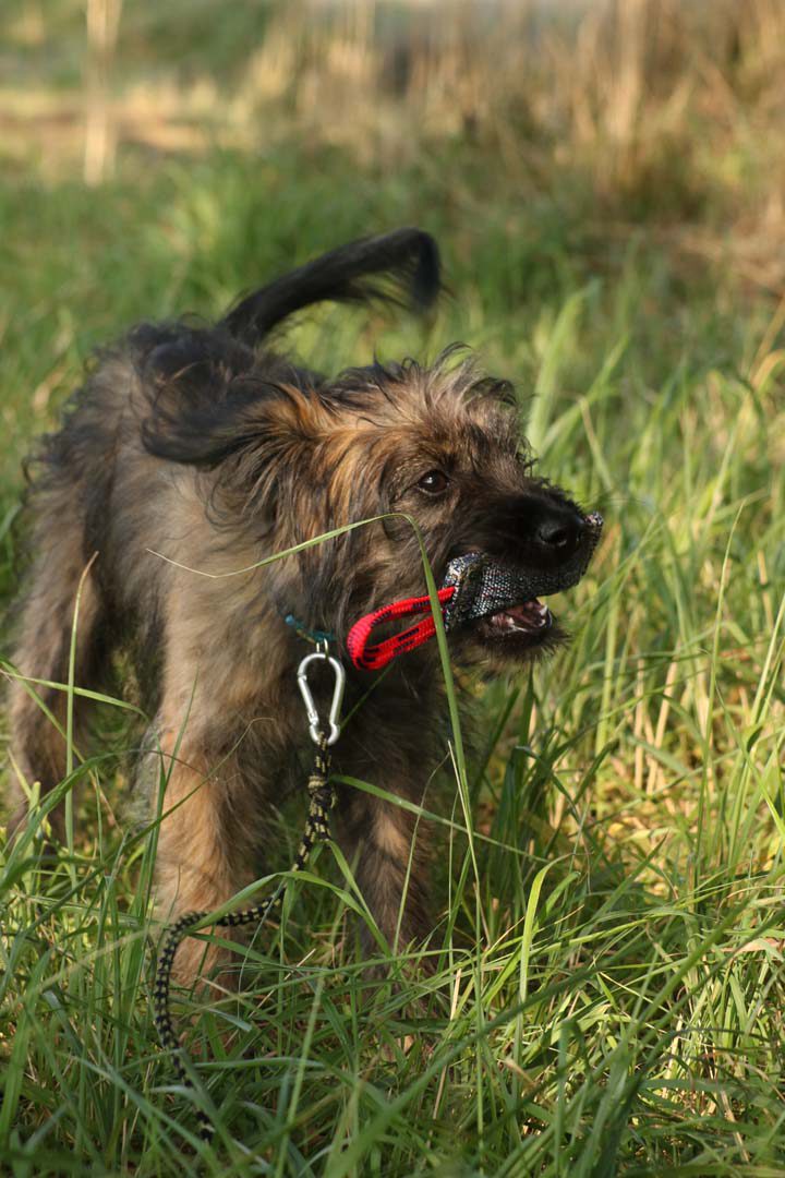 Mit ihr hat also alles begonnen. Ein Münsterländermix mit viel Selbstbewusstsein, jeder Menge eigenem Willen und natürlich einer gehörigen Portion Jagdtrieb: Nicht gerade ein Anfängerhund. Obwohl – vielleicht war genau meine Laika für mich der perfekte Anfängerhund, denn ich bin sicher, ich würde heute nur einen Bruchteil von meinem Hundeverstand haben, hätte ich nicht mit ihr so viel gelernt. So richtig ein Team sind wir erst durch die Rettungshundearbeit im Deutschen Roten Kreuz geworden. Durch ihren Jagdtrieb war sie für die Flächensuche nicht wirklich geeignet, aber am Ende hat sie zweimal erfolgreich die „Rettungshundeprüfung Trümmer“ bestanden. Ich verdanke ihr so viel! Zum Beispiel hat sie mir immer wieder meine Fehler verziehen, wenn ich es noch nicht besser wusste und wenn ich verschiedene Wege der Hundeerziehung ausprobieren durfte, um endlich den besten Weg für uns zu finden. Dies war natürlich für alle weiteren Hunde, die nach ihr folgten, ein riesen Gewinn – und natürlich für mich selbst. Durch die Erfahrung mit Laika habe ich einen großen Werkzeugkoffer an Methoden, um für meine Hunde und mich in Zukunft immer schneller den passenden Weg zu finden. Leider ist Laika nur etwa 10 Jahre alt geworden, aber sie bleibt unvergessen in meinem Herzen.